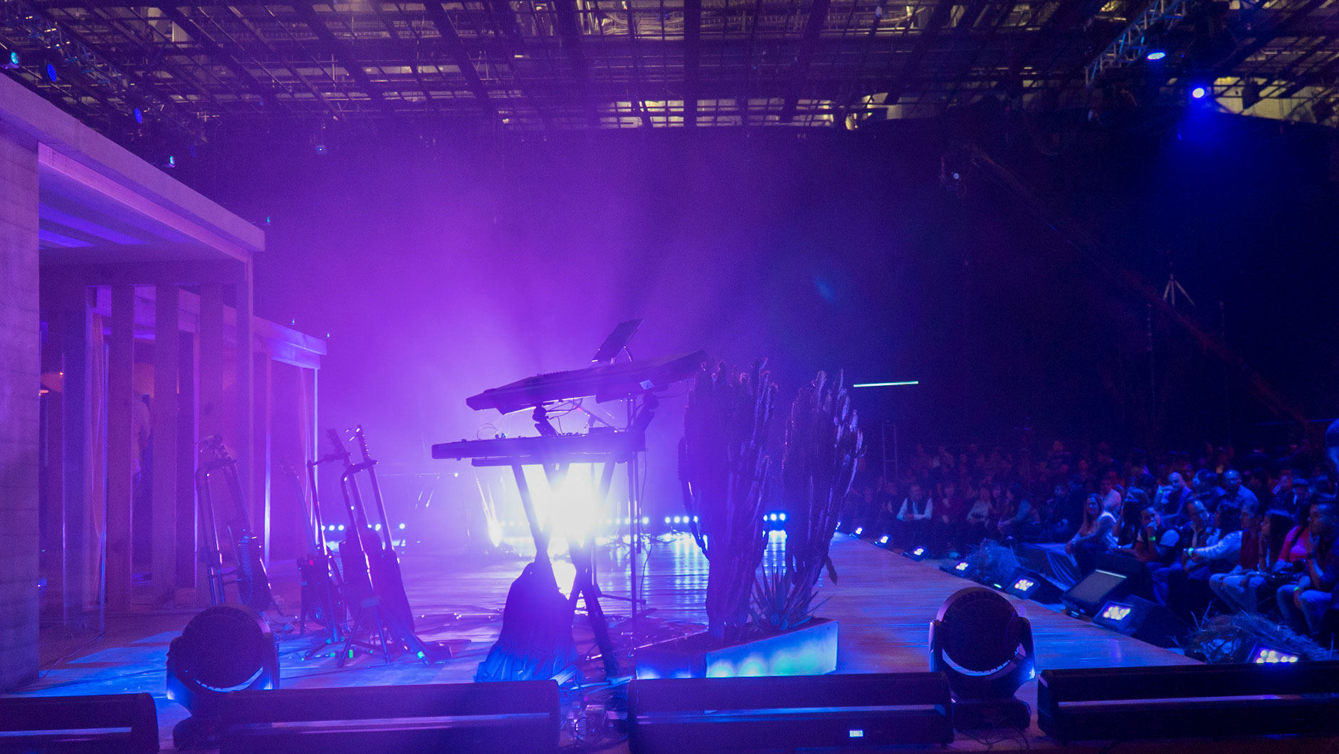 Reproducción de Loft estilo contemporáneo con ambientación de desierto, apoyo visual video wall de 20x6m 2.6 pitch videos HD amanecer, crepúsculos y noche.
